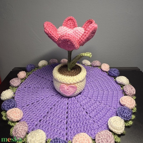 Horgolt tulipán szív középpel