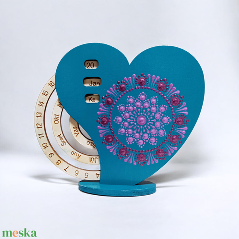 Szív alakú mini öröknaptár - türkiz-rózsalila
