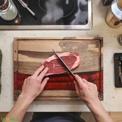 - Anyaga: diófa, élelmiszerbiztos epoxy gyanta, fa
