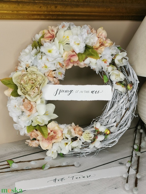 - Anyaga: selyemvirágok, vesszőkoszorú