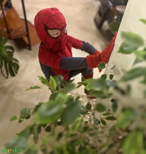 Egyedi, kézzel készített Pókember jelmez – hímzett mintával, horgolt pókkal - upcycling
