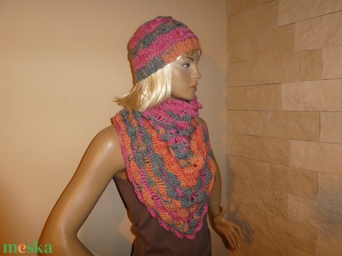 horgolt sál kendő+ sapka