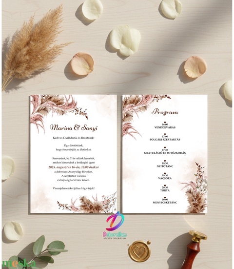 A meghívó nyomtatott oldalai teljes mértékben testreszabhatók – a szövegezés, elrendezés és tartalom igény szerint alakítható, hogy tökéletesen illeszkedjen a Te eseményed hangulatához és stílusához.
