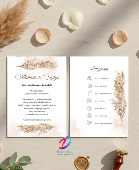 A meghívó nyomtatott oldalai teljes mértékben testreszabhatók – a szövegezés, elrendezés és tartalom igény szerint alakítható, hogy tökéletesen illeszkedjen a Te eseményed hangulatához és stílusához.