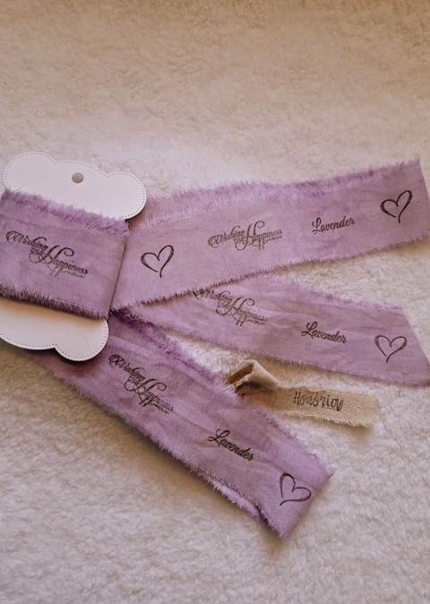 Kézzel festett és bélyegzett, tépett, pamutszalag, LAVENDER felirattal- antik levendula lila-014