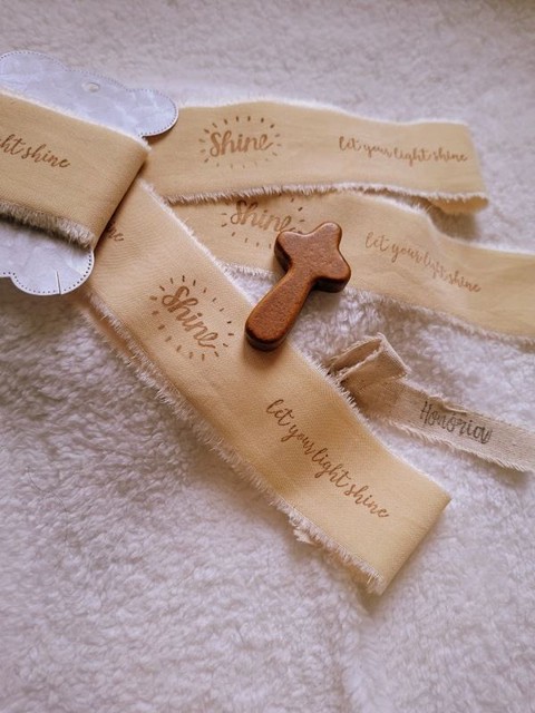 Kézzel festett és bélyegzett, tépett, pamutszalag, Bibliai, igés, felirattal- krém-022
