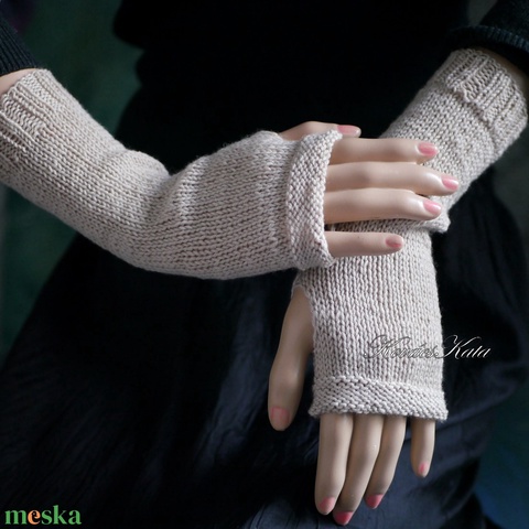 BOSZI KESZTYŰ / selymes - exkluzív kézzel kötött kesztyűszár, kézmelegítő / ekrü KÉSZLETEN