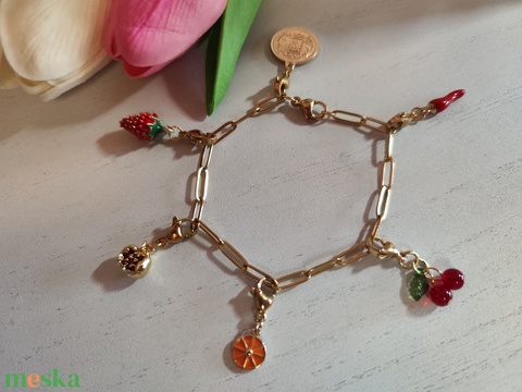 Kézműves nemesacél charm karkötő – egyedi gyümölcsös díszítéssel!