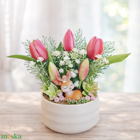 Tavaszi őzikés dísz kerámia kaspóban II.