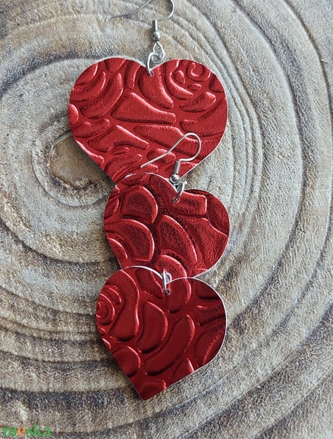 Piros metál szív alakú bőr fülbevaló
