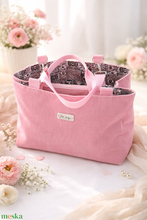 Rózsaszín kordbársony válltáska