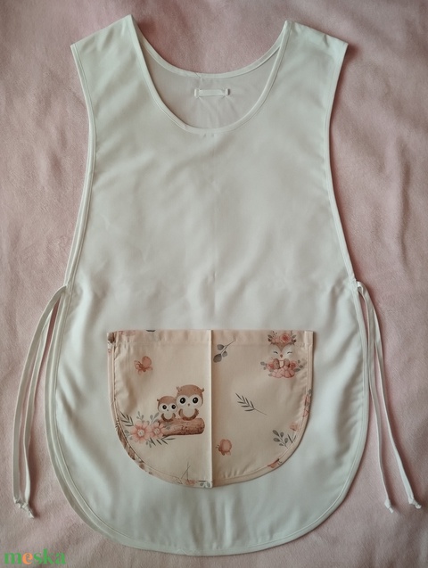 Női fehér lapköpeny,mintás zsebbel , ovis , munkaruha