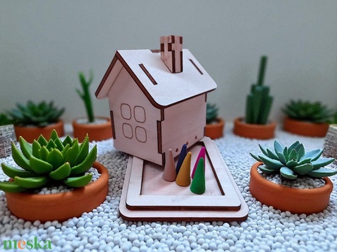 otthon & életmód, dekoráció, asztal és polc dekoráció, asztaldísz, natúrfa, illatosító, füstölő, házikó, kunyhó