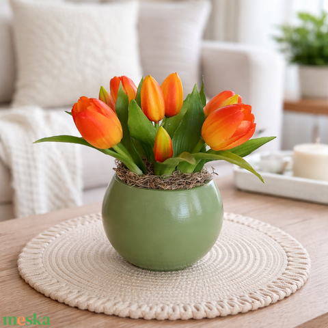 Tulipánok kerámia gömb kaspóban-narancs