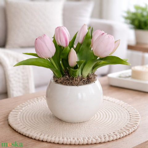 Tulipánok kerámia gömb kaspóban-rózsaszín