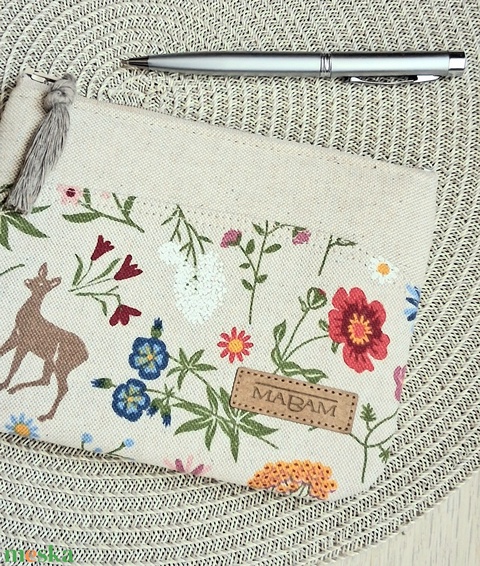 Őzikés virágos, női lapos neszesszer, tok