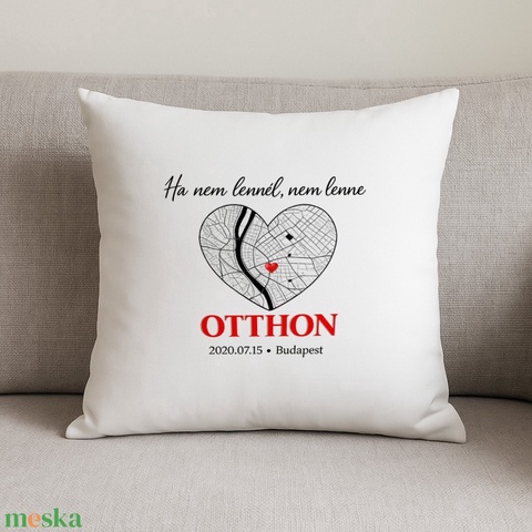 Otthon térképes szív párna – személyre szabható