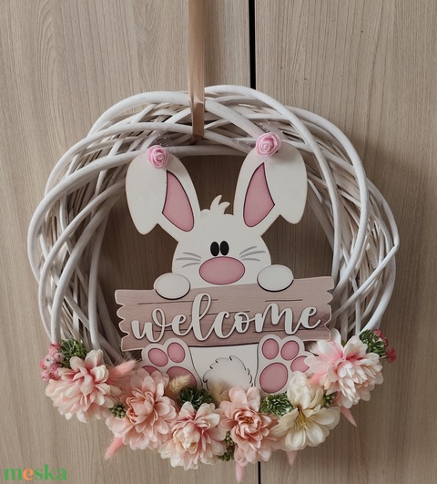 - Anyaga: vessző alap, fa dekor, selyem virágok, dekorok
