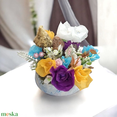 Virágoskert asztali dekoráció Nőnapra, Anyák napjára