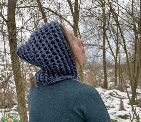 Kobaltkék középkori főkötő – Misztikus csillogással, kézzel kötött kiegészítő