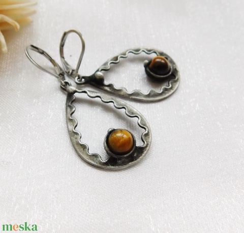 - Anyaga: vörös tigrisszem, rézdrót, ólommentes ón, felületkezelő anyagok, acél fülbevaló akasztó, réz, ón, acél