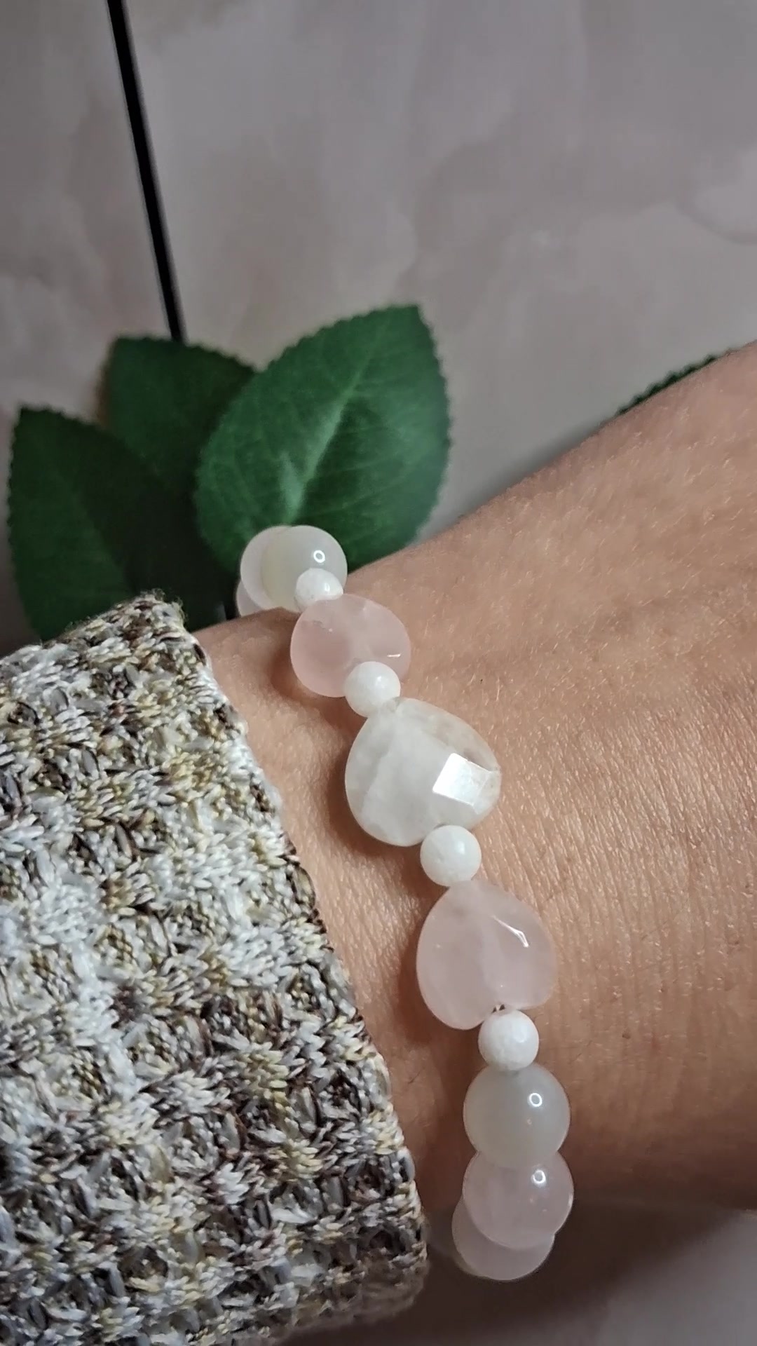 Ásvány karkötő holdkővel és rózsakvarccal – szív alakú kövekkel