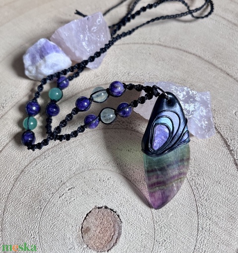 - Anyag/Összetevő ásvány csiszolat, polimer clay, makramé fonal, ásvány gyöngy