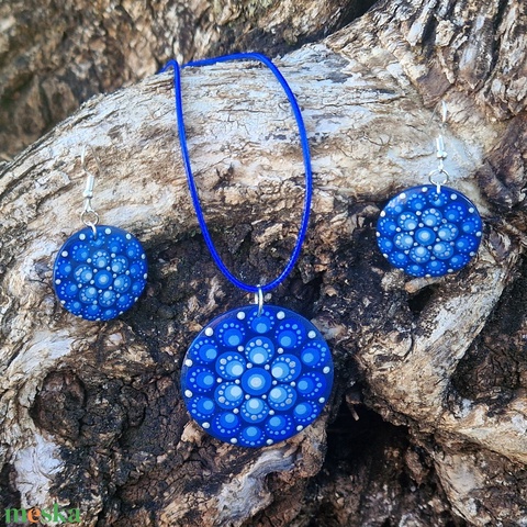 Ékszerszett pontfestéssel - nyaklánc + fülbevaló (nagy, kék kaptár)