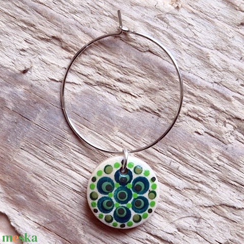 Pohár jelölő karika pontfestett függővel (zöld-natúr)