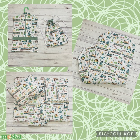 Vonatos ovis vagy kisgyermek ágynemű szett + ovizsák tornazsák szett + derékalj