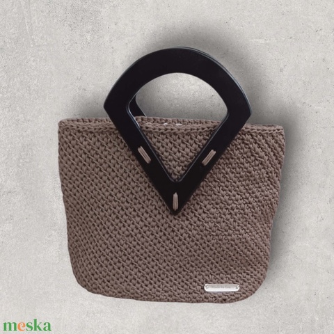 Gyönyörű,cappuccino színű 2mm-es polyester zsinórfonalból készült. Dizájnos, sötétbarna fa füllel. A táska merev műbőr aljjal készült, ami stabilitást biztosít neki! Bélése hozzá illő mintás vászon anyag. Kellemes tapintású, formatartó! Tökéletes választás a mindennapokra vagy ajándéknak is kiváló! Igazán exclusive, egyedi darab!