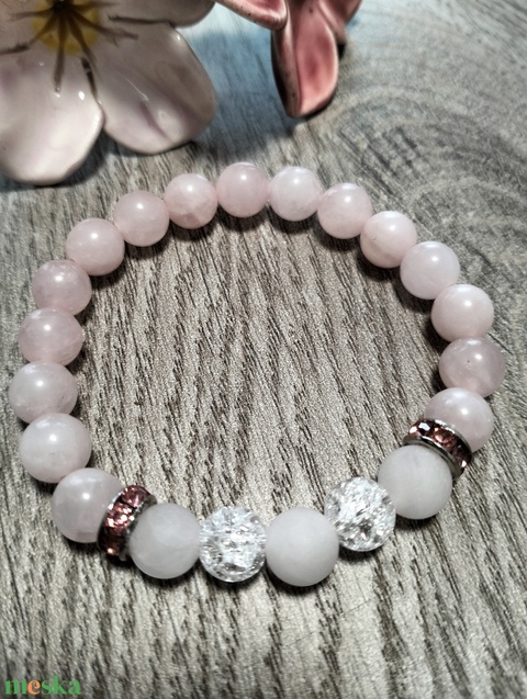 Női Ásványkarkötő - Rózsakvarc + Roppantott hegyikristály