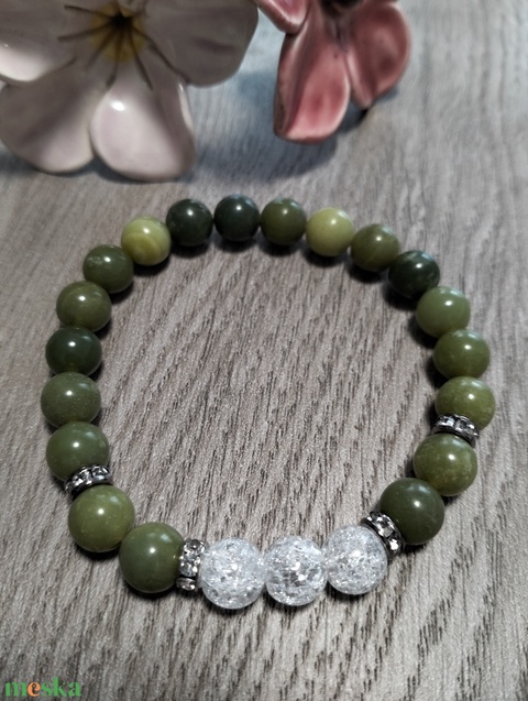 Női Ásványkarkötő - Roppantott hegyikristály + Jáde