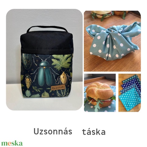 Uzsonnás táska, cipzárral, PUL béléssel (élelmiszerbarát)
