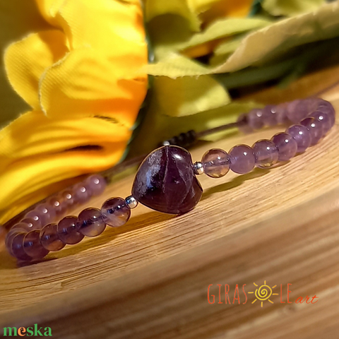 - Anyaga: sterlingezüst, damilos poliészter zsinór, ametiszt