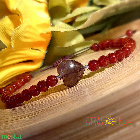 - Anyaga: sterlingezüst, damilos poliészter zsinór, ametiszt, karneol
