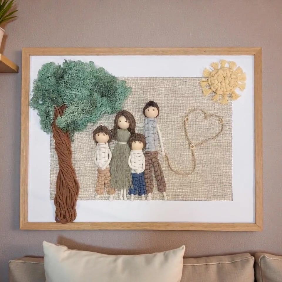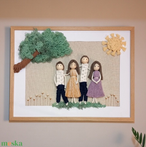Személyre szabható 3D makramé családi fonalkép izlandi zuzmóval – egyedi kézzel készült falikép ajándékba