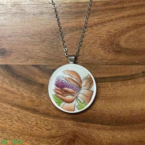Mentett porcelán darabok - virágos nagy medálos nyaklánc - nemesacél
