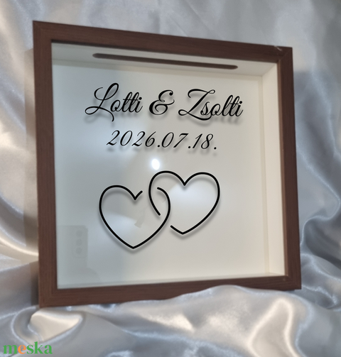 Esküvői pénzgyűjtő , sorsjegy gyűjtő , akár menyecsketánchoz is ideális – egyedi felirattal, szív motívummal
