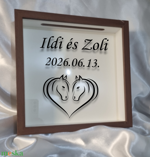 Esküvői pénzgyűjtő , sorsjegy gyűjtő , akár menyecsketánchoz is ideális – egyedi felirattal, lovas motívummal
