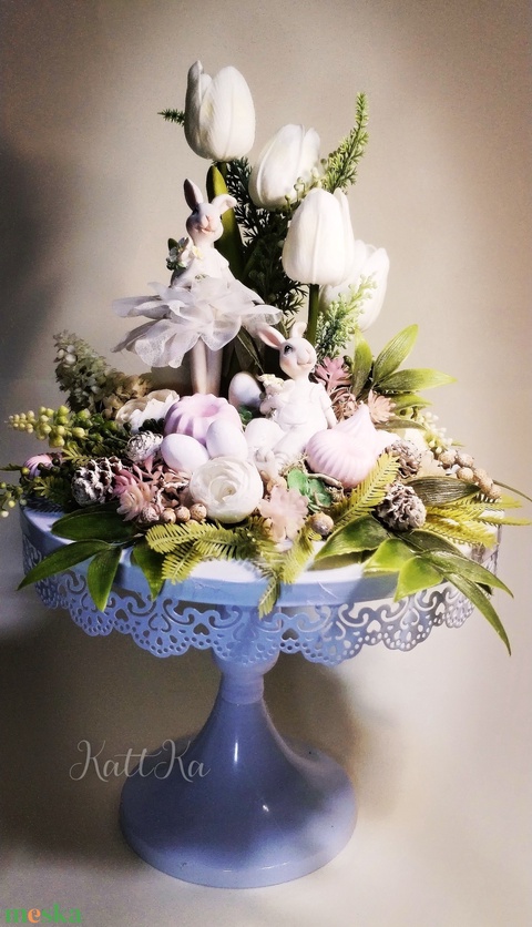 Húsvéti Bál a Kristálypalotában – 40 cm Fehér Prémium Kézműves Asztaldísz