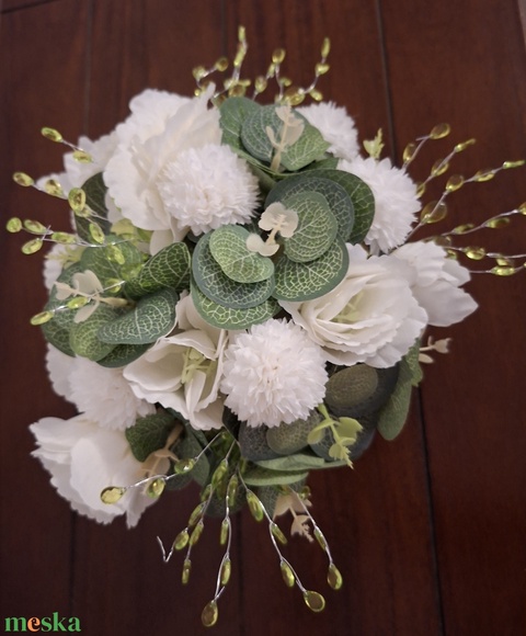 - Anyag/Összetevő virágdoboz, bársonyszalag, pompomvirág, liliantusz, akrilgyöngy, eukaliptusz, zöld levelek