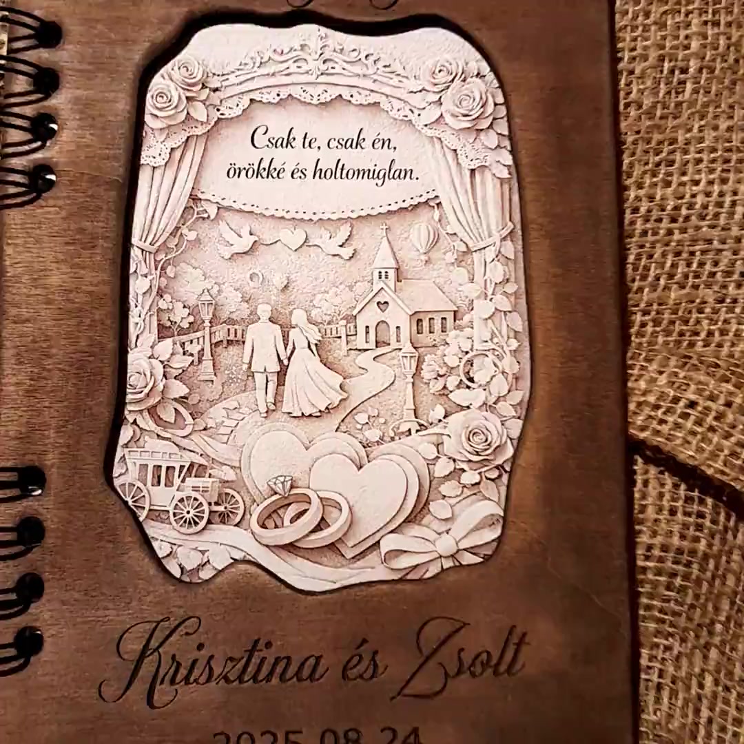 Ez a különleges, kézműves esküvői vendégkönyv nem csupán egy notesz – hanem a Ti szerelmi történetetek örök lenyomata. Minden egyes oldal arra vár, hogy barátaitok és szeretteitek megtöltsék jókívánságokkal, emlékekkel és kedves gondolatokkal a nagy napotok alkalmából.
