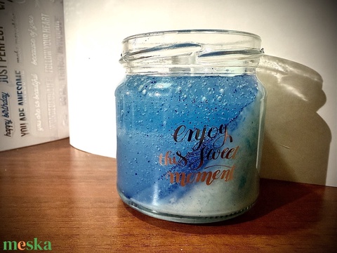 - Anyaga: szójaviasz, zseléviasz, csillámpor, illatanyag, viaszfesték, kókusz viasz, egyébdekorációk