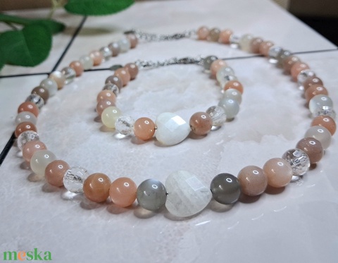 Holdkő és hegyikristály ásvány karkötő és nyaklánc szett – nőies, csillogó ékszer