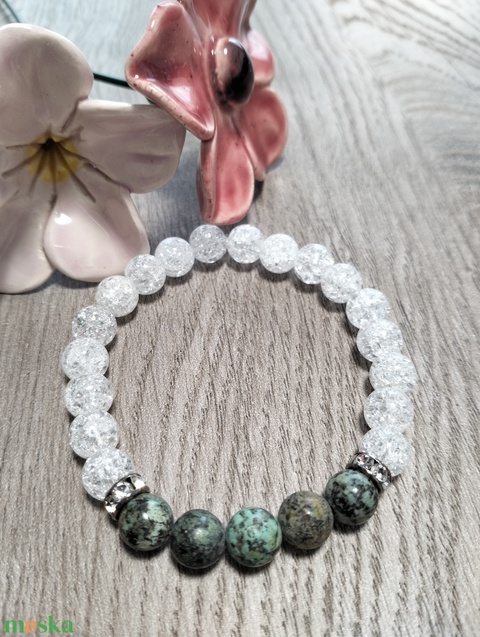 Női Ásványkarkötő - Roppantott hegyikristály + Afrikai türkiz