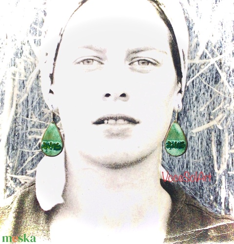Fűkorall - Türkizzöld csepp tűzzománc Fülbevaló