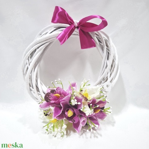 Orchidea virágos koszorú, ajtódísz, ablakdísz, kopogtató
