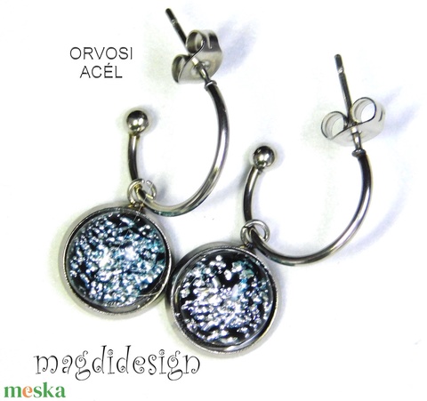 Ezüst üvegékszer stiftes lógós nemesacél fülbevaló
