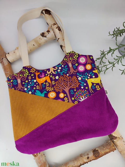 Dóra vászontáska lila mustár kord szarvasok / textilszatyor